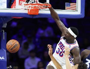 本场比赛,76人替补中锋阿德姆-博纳成为翻盘奇兵,他替补出战18分钟,贡献2分5板以及5记血帽!