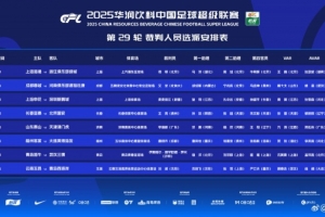 中超第29轮裁判:傅明执法海港vs浙江 沙特裁判执法海牛vs三镇