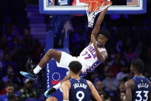 可以肯定的是,76人本赛季若想真正有所作为,就需要恩比德打出接近他MVP赛季的水准。但他们现在未来可期,队中的马克西、埃奇库姆、格莱姆斯和麦凯恩(当他从右手拇指韧带撕裂的伤势中恢复后)组成了东部最好的后卫轮换阵容之一。