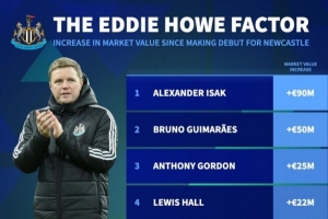 体育资讯7月12日讯 纽卡已经官宣签下伊兰加,《转会市场》也统计了近年加盟纽卡后的身价上涨情况。