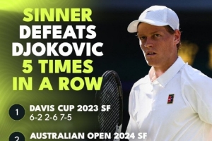 体育资讯7月12日讯 在凌晨结束的温网男单半决赛中,辛纳3-0德约科维奇,晋级温网男单决赛。
