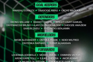 体育资讯11月8日讯 尼日利亚队公布新一期球员名单,尼日利亚将在11月非洲世预赛附加赛半决赛中对阵加蓬,若取胜将对阵喀麦隆和民主刚果的胜者。