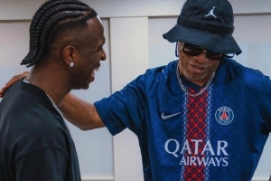 巴西前锋维尼修斯迎来了25岁生日,罗纳尔迪尼奥社媒晒出与他的合照,配文:“生日快乐,维尼修斯!”