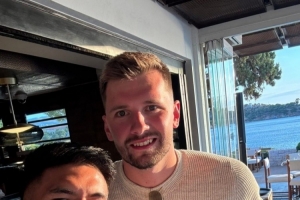 体育资讯7月13日讯 有网友晒出了在希腊雅典偶遇湖人球员东契奇和八村塁的照片。从照片中可以看出,这个休赛期东契奇的体型保持的不错。