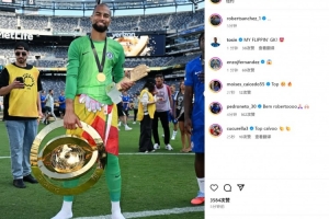 他也在赛后当选为本届赛季最佳门将,桑切斯也在赛后通过社媒晒出自己手捧世俱杯冠军奖杯和金手套奖的照片,没有文字内容只是附上一串省略号。