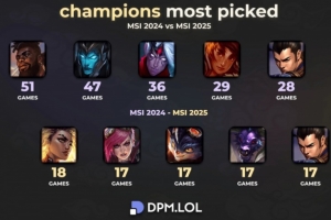 2025年MSI最高选用英雄:芮尔-18,蔚-17,兰博-17,牛头-17,赵信-17