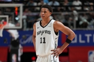 此役,马刺14号秀卡特-布莱恩特再次体现出守强攻弱的特点。他11投2中,三分3中0,罚球2中1,仅得5分。