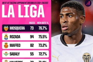 Opta指出,莫斯克拉是西甲阻止对手过人成功率最高的球员,对手73次尝试过掉他,其中76.7%的过人被他阻止,在尝试阻止对手过人次数50+的西甲球员中,他的成功率最高。