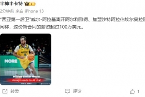有传闻称,这份新合同的薪资超过100万美元。
