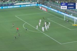 体育资讯07月19日讯 古加任意球直接破门!国安第25分钟扳回一城,1-2落后申花