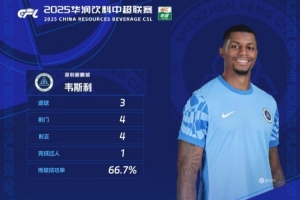 韦斯利夏窗加盟新鹏城,在中超第17轮深圳新鹏城主场对阵青岛海牛的比赛中,这位前锋迎来首秀,他4次射门4次射正打进3球上演帽子戏法,最终帮助深圳新鹏城4-0取胜。