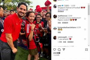 米兰将在新加坡的季前赛中对阵阿森纳,米兰名宿帕托在新加坡参加季前赛活动,晒出与球迷的合照,配文:“新加坡足球节日。”