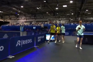 大运会乒乓球赛场,中国女双组合杨屹韵/赵尚、韩菲儿/王晓彤分别战胜各自对手成功会师决赛 ,为中国队包揽女双冠亚军。在决赛中,韩菲儿/王晓彤击败队友夺冠,拿下中国乒乓球队本届大运会乒乓球项目首金!此前,中国队在男团、女团比赛中遗憾失利。