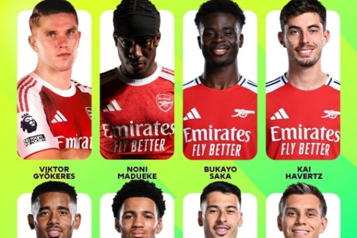 英超官方晒出阿森纳的锋线选择,8人总身价4.94亿欧,年龄普遍在23岁至28岁之间。