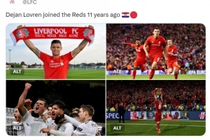 2014年7月27日,克罗地亚后卫洛夫伦从南安普顿加盟利物浦,转会费2530万欧元。利物浦官方社媒晒出洛夫伦的照片,回顾他在红军的历程。