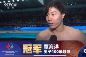 体育资讯7月28日讯 在刚刚结束的游泳世锦赛男子100米蛙泳决赛中,覃海洋58秒23夺冠。赛后,他接受了记者采访。
