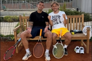 体育资讯7月30日讯 米兰当前正在进行亚洲行,而新援莫德里奇仍在享受假期。他在今日通过社媒晒出同好友洛夫伦的打网球合照。