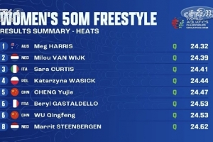 吴卿风预赛游出了24秒53,排名所有参赛选手第六,晋级半决赛。