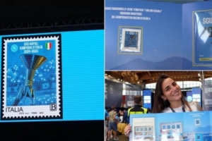 这枚邮票属于“社会价值”主题系列,其发布仪式在卡斯特尔迪桑格罗体育馆举行。这座阿布鲁佐大区的小城已连续六年承办那不勒斯季前集训,自然也成为众多那不勒斯球迷的朝圣地。出席活动的有市长安杰洛-卡鲁索、那不勒斯运营总监詹卢卡-巴耶西,以及分管集邮事务的副部长福斯塔-贝尔加莫托、意大利邮政集邮商业总监马尔科-迪尼古拉、国家印钞造币厂代表克里斯蒂亚诺-纳波利,以及担任主持的《华尔街意大利》主编莱奥波尔多-加斯巴罗。