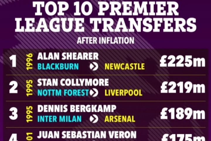 不过太阳报表示,根据足球金融媒体Valuball的计算,如果考虑到通货膨胀,1.2亿镑甚至无法进入英超历史前20,目前的第20名为2023年1.15亿镑加盟切尔西的凯塞多,考虑通胀后为1.24亿镑。