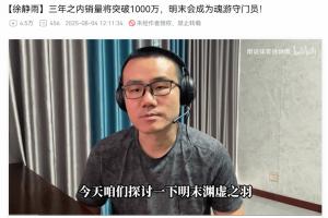 体育资讯8月5日讯 知名UP主@雨说体育徐静雨昨日发视频称,《明末:渊虚之羽》首年销量将达700万,三年之内将突破1000万。