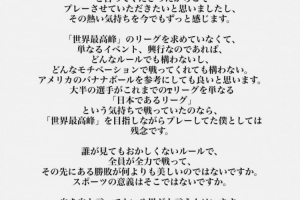 好像有很多人曲解了我的意思,我最后在此说明一下。T联赛设立的初衷应该是成为世界一流联赛吧,因此我选择来到这里,我所效力的冈山队也曾向我表达了要成为世界第一俱乐部的意愿,这也让我当初下定了在这里效力的决心,如今回想起来,心中也是热血沸腾。