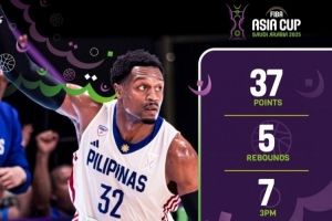 本场比赛,菲律宾男篮归化球员布朗利空砍37分,他出战36分钟40秒,19投12中,三分12投7中,罚球8罚6中,得到37分5篮板3助攻。