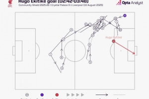 体育资讯8月10日讯 在社区盾杯决赛利物浦对阵水晶宫的比赛中,埃基蒂克开场不到4分钟破门。