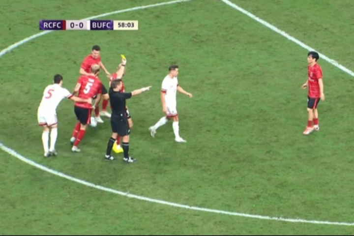 比赛第59分钟,杨明洋、李扬先后防守拉人染黄,蓉城1分钟吃到2张黄牌。