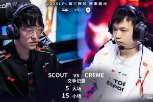 体育资讯8月13日讯 今日LPL第三赛段将迎来JDG对阵TES的比赛,赛前官方直播间给出了Scout vs Creme历史交手记录:大场5-10,小场15-24!