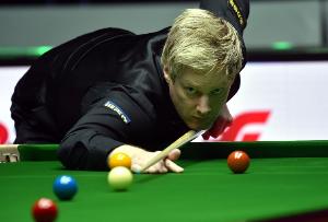 开场后罗伯逊先胜两局,第三局斯莱塞打出单杆92分扳回一城,第四局罗伯逊打出单杆93分再胜一局。