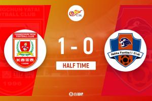 上半场比赛结束,长春亚泰主场暂时1-0领先梅州客家。