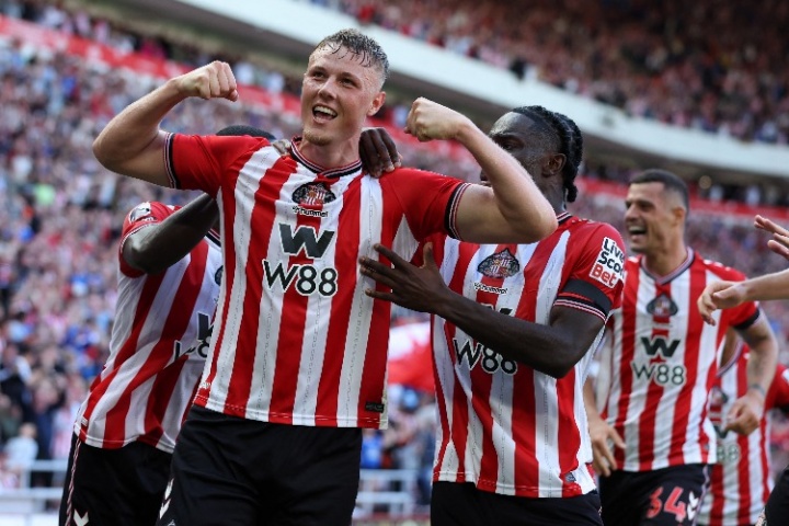 体育资讯08月16日讯 英超第1轮,升班马桑德兰坐镇光明球场,迎战西汉姆联。上半场两队机会寥寥,均未取得进球。下半场比赛,梅恩达接阿德雷特长传头球破门,巴拉德头球再下一城,伊西多补时杀死比赛,桑德兰3-0战胜西汉姆联,取得时隔8年重回英超后的开门红。