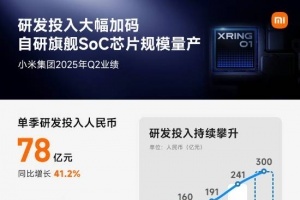 本季度小米自研旗舰SoC芯片也实现规模量产,并且小米15S Pro、小米平板7 Ultra、小米平板7S Pro 12.5都已经搭载玄戒O1上市。小米表示,目前研发人数已经达到22641人,创历史新高。