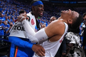 蒂格表示:“亚历山大是最好的,他场均32分,我会把威斯布鲁克排第二、KD第三,我只是根据雷霆球迷的感受来。0号和35号会被退役,亚当斯的12号也应该被退役。”