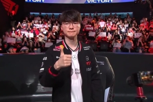 体育资讯8月22日讯 LCK常规赛T1以2-1击败NS,赛后中单Faker亮出标志性手势点赞。