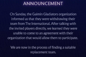 上周日Gaimin Gladiator俱乐部通知我们,他们的战队将退出本届国际邀请赛。我们后来与受邀的选手直接沟通,但了解到他们与俱乐部难以达成一致进行参赛。