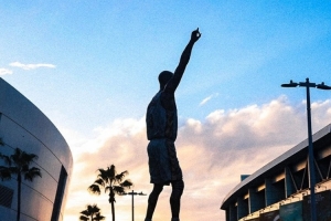 第二条动态,湖人官推分享了球队主场外的科比雕像,配文写道:“曼巴永恒。”