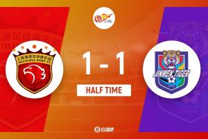 上半场伤停补时3分钟,半场结束,上海海港暂1-1天津津门虎。