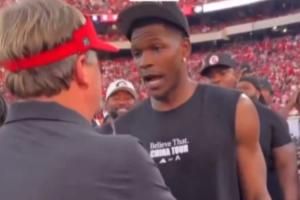 体育资讯09月28日讯 森林狼球星爱德华兹重返母校佐治亚大学,观战NCAAF佐治亚大学vs阿拉巴马大学的橄榄球赛。