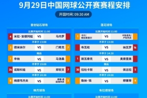 体育资讯9月28日讯 中网9月29日赛程更新,第三轮比赛时间确定,郑钦文vs诺斯科娃的比赛将在不早于19:00进行。