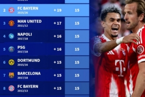 体育资讯9月29日讯 德转列出本世纪五大联赛开局5轮后最佳战绩,本赛季拜仁5连胜19个净胜球排在第二位,切尔西10/11赛季5连胜20个净胜球第一。