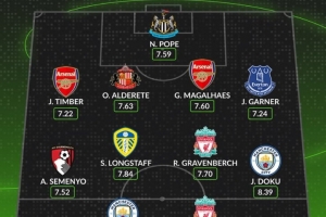 体育资讯10月1日讯 数据网站Whoscored盘点了英超9月场均评分最高阵容,具体如下:
