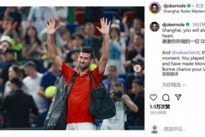 体育资讯10月11日讯 在上海大师赛止步半决赛后,德约科维奇通过社交媒体感谢了上海和球迷。