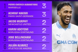 1.奥巴梅扬(马赛):3