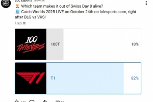 LoL Esports官方发布本场比赛的赛果预测投票,82%的投票者认为T1将获胜。