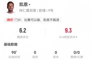 体育资讯10月25日讯 拜仁在本轮德甲3-0击败门兴,首发出任前腰的凯恩本场数据如下: